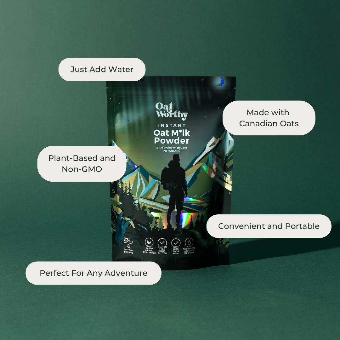 Your ultimate trail companion! Designed for the outdoor enthusiast, this lightweight, portable, and easy-to-prepare instant oat milk powder offers a rich, creamy drink in minutes—just add water. Whether you're hiking, camping, or exploring, this sustainable powerhouse is ready to go wherever you are. Make your adventures Oatworthy. Buy now and fuel your journey!